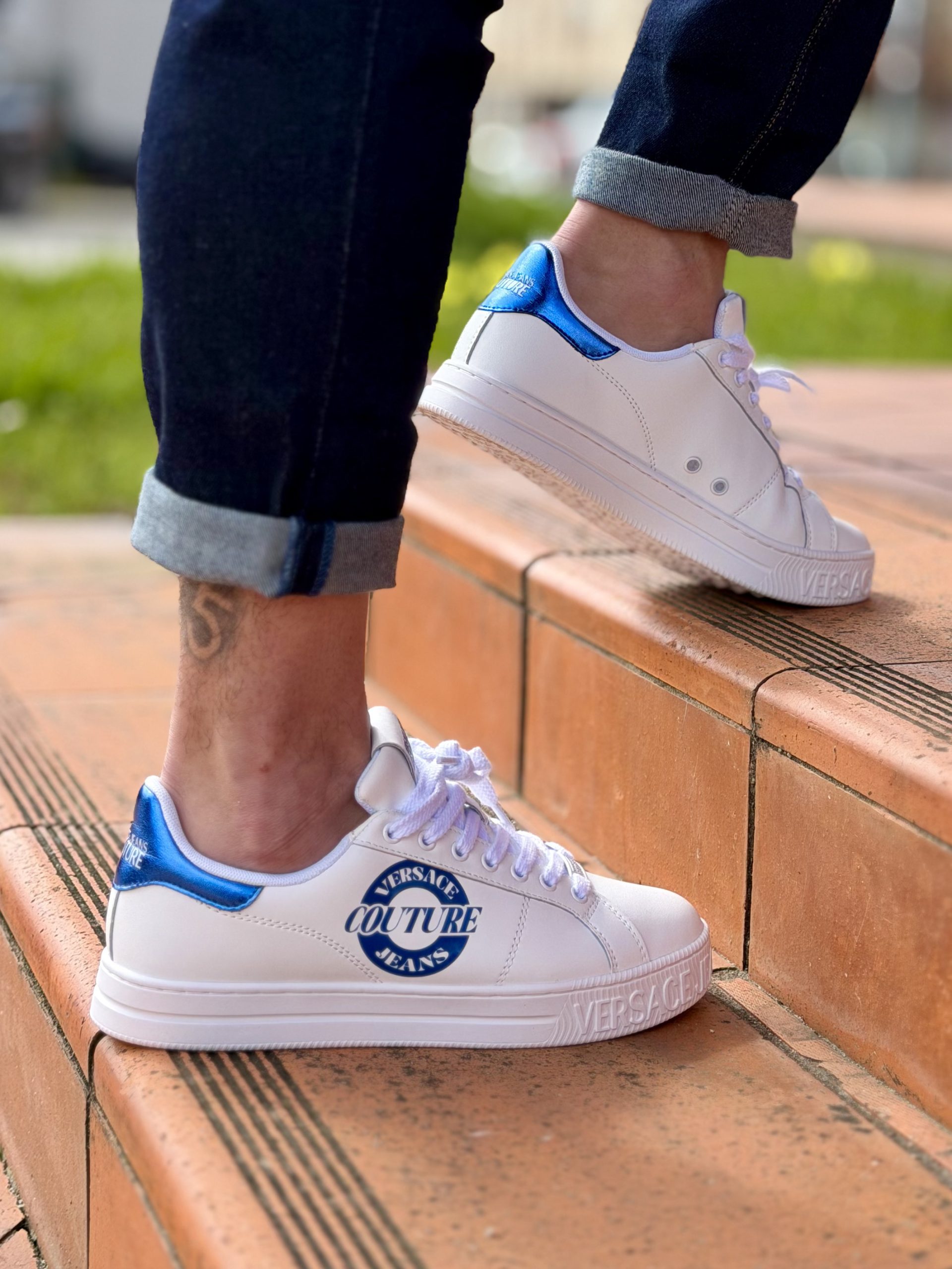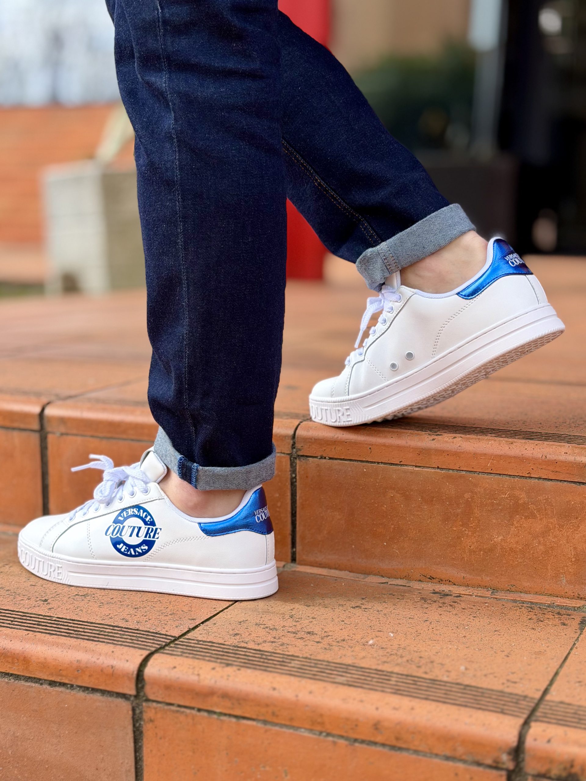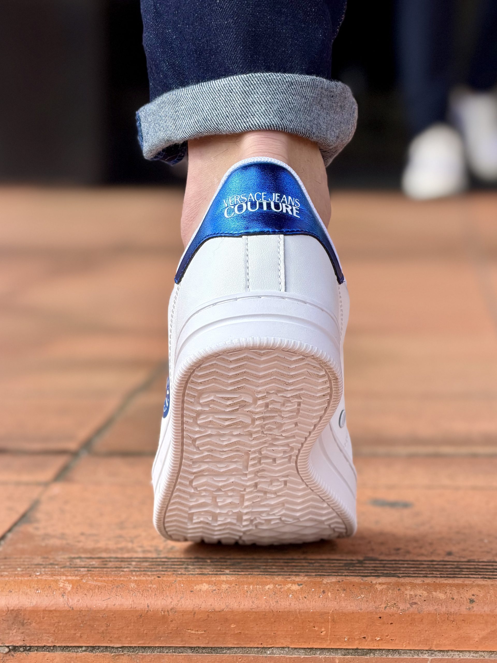 Adicione um toque de energia e sofisticação ao seu estilo com as sapatilhas Fondo Court 88 da Versace Jeans Couture. Este modelo destaca-se pelo contraste refrescante entre o branco imaculado e os detalhes em azul elétrico metalizado, criando um visual contemporâneo que não passa despercebido.