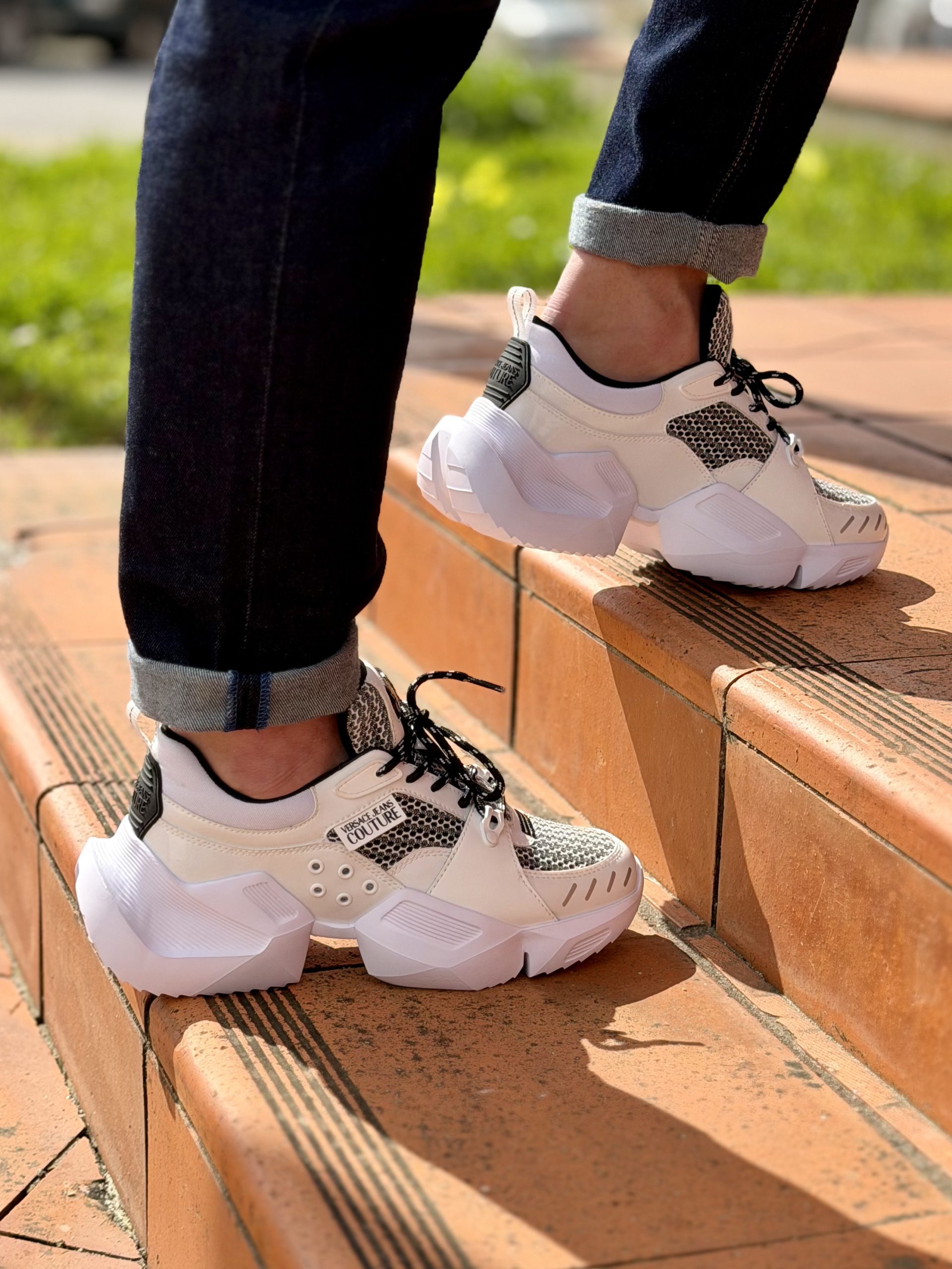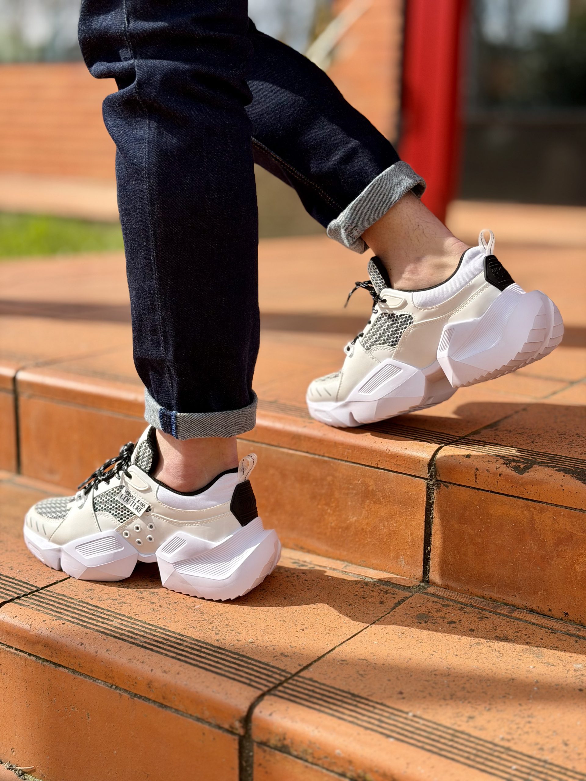 Desafie as leis do estilo com as sapatilhas Fondo Gravity da Versace Jeans Couture. Este modelo é uma obra-prima de design contemporâneo, apresentando uma sola volumosa e arquitetónica que redefine a tendência “chunky” com uma estética futurista e de alta performance.