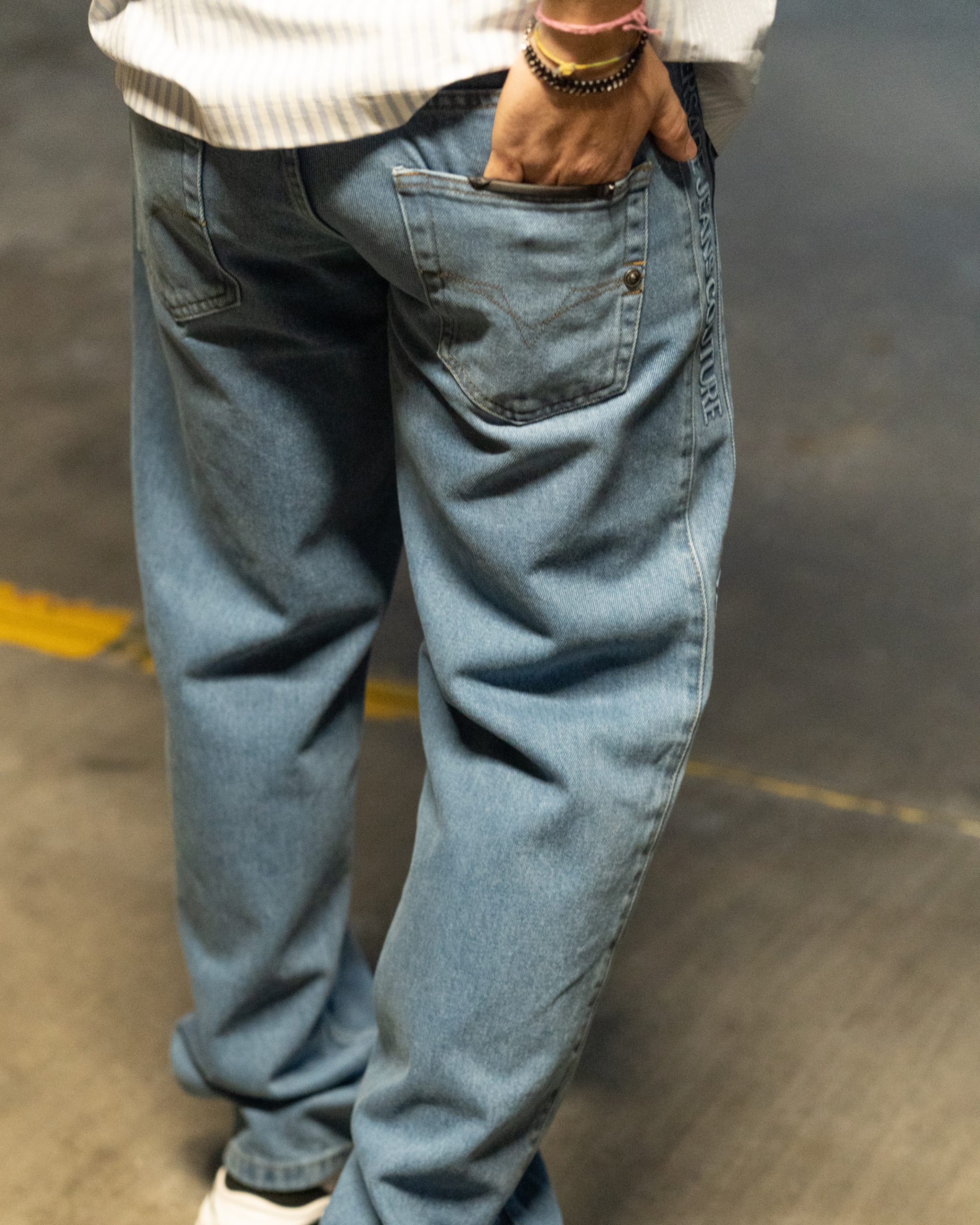 Design: Branding vertical em relevo na lateral da perna