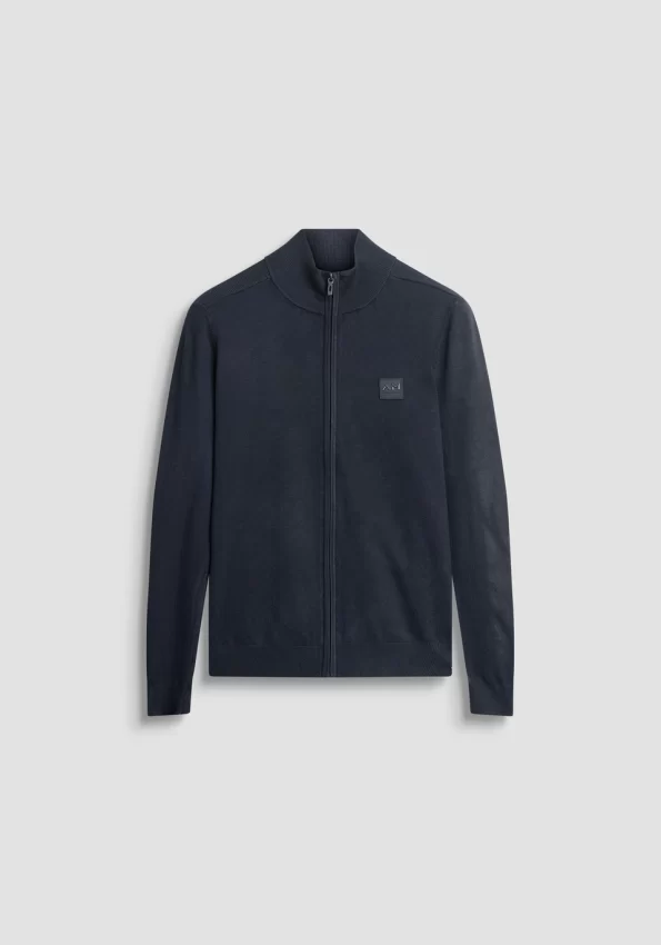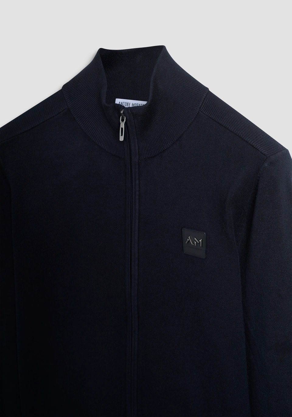 SUÉTER SLIM FIT DE MISTURA DE VISCOSE COM LOGOTIPO E ZÍPER