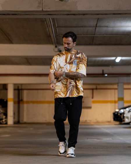 T-shirt Just Cavalli “Golden Palm” – Estampado Tropical Dourado – 80PM633 B Golden Palm